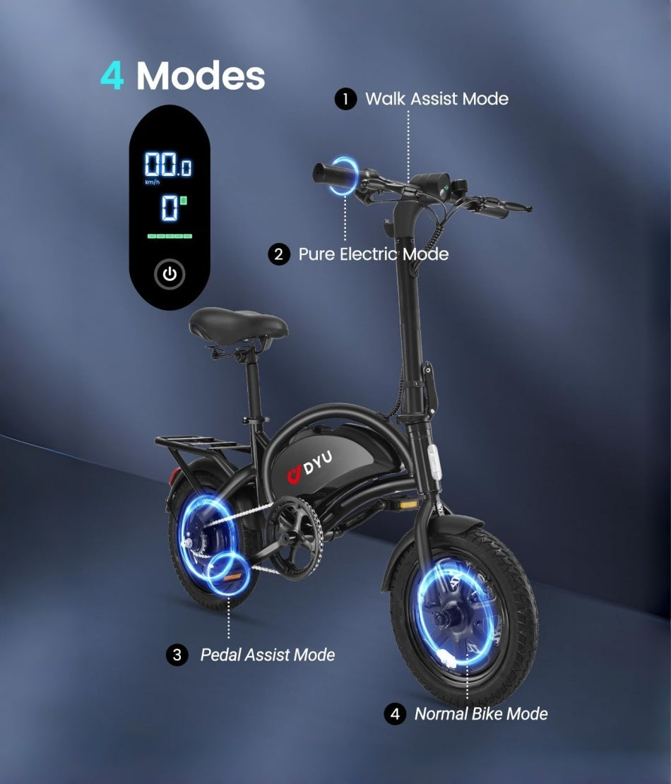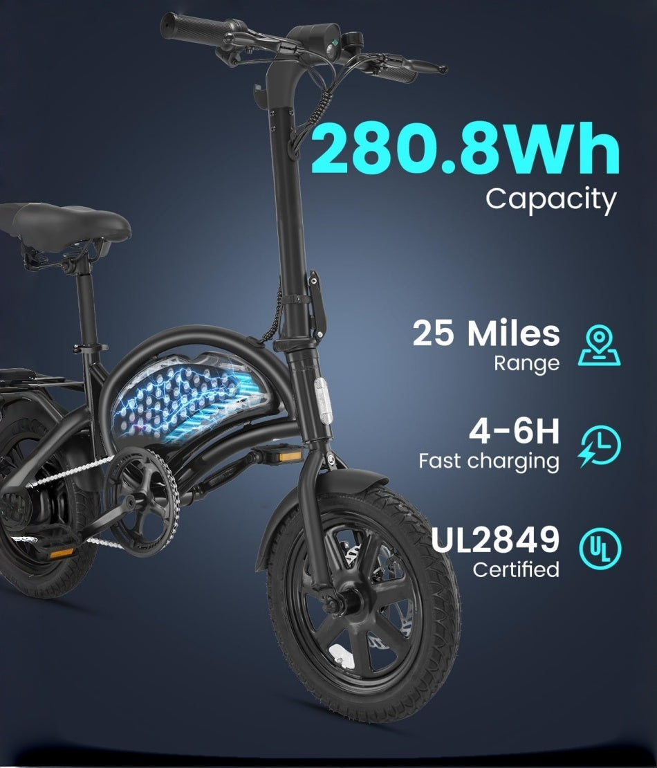 36V 250W Folding Fat Tire E-Bike - Urban Electric Moped with Pedals