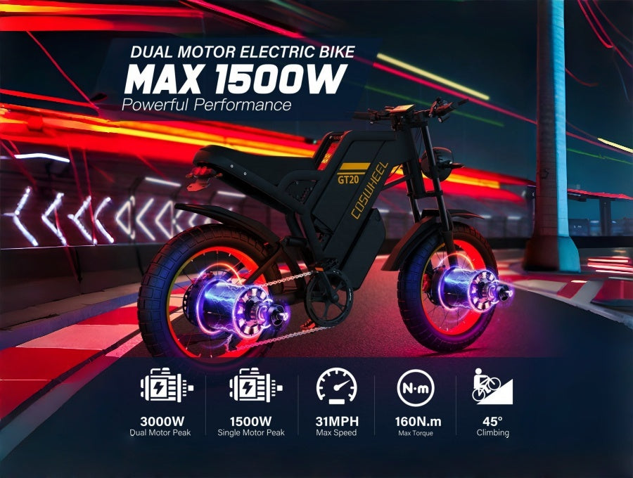 Dual Motor 3000W Electric Bike Fat Tire Design with Dual Batteries